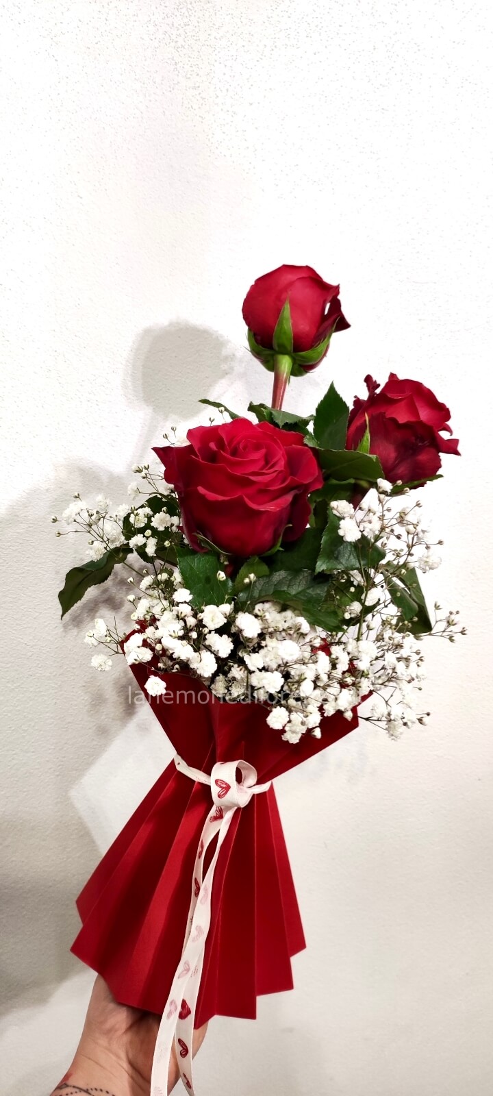 MAZZO 3 ROSE RED NAOMI CON GYPSOPHILA