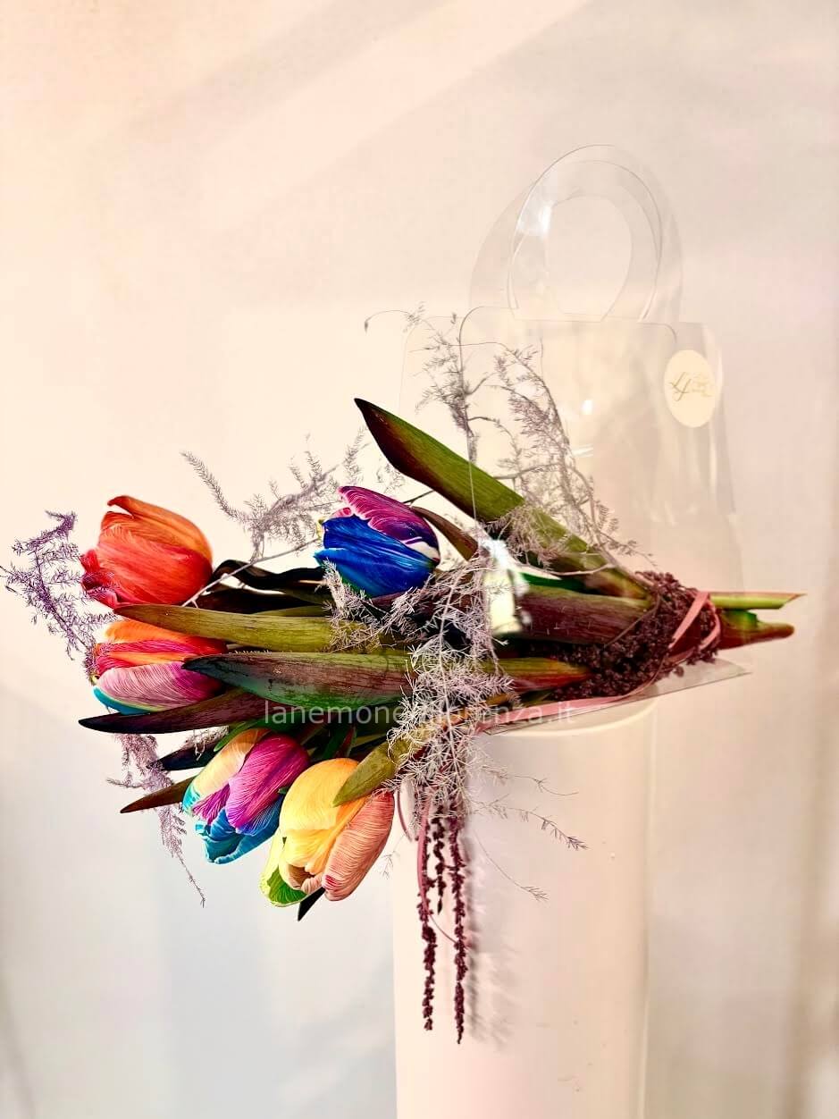 MAZZO DI TULIPANI RAINBOW IN BAG TRASPARENTE